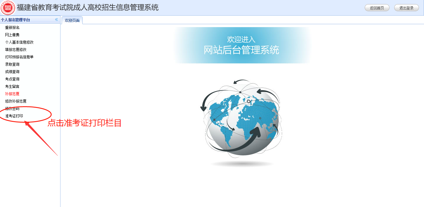 第二步:登入后點擊準考證打印欄目