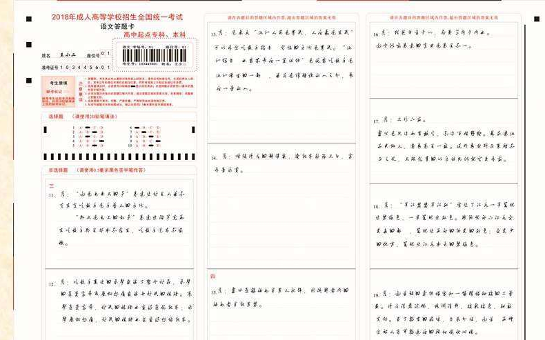 根據往年,考生們在參加成人高考的時候,每科開考前,監考人員將按照考生座位序號,將條形碼、答題卡和草稿紙一同發給考生。