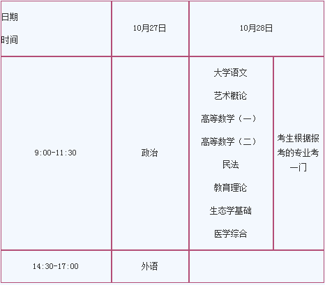 2018年成人高考全國統(tǒng)一考試時間已確定,將于10月27日至28日舉行。