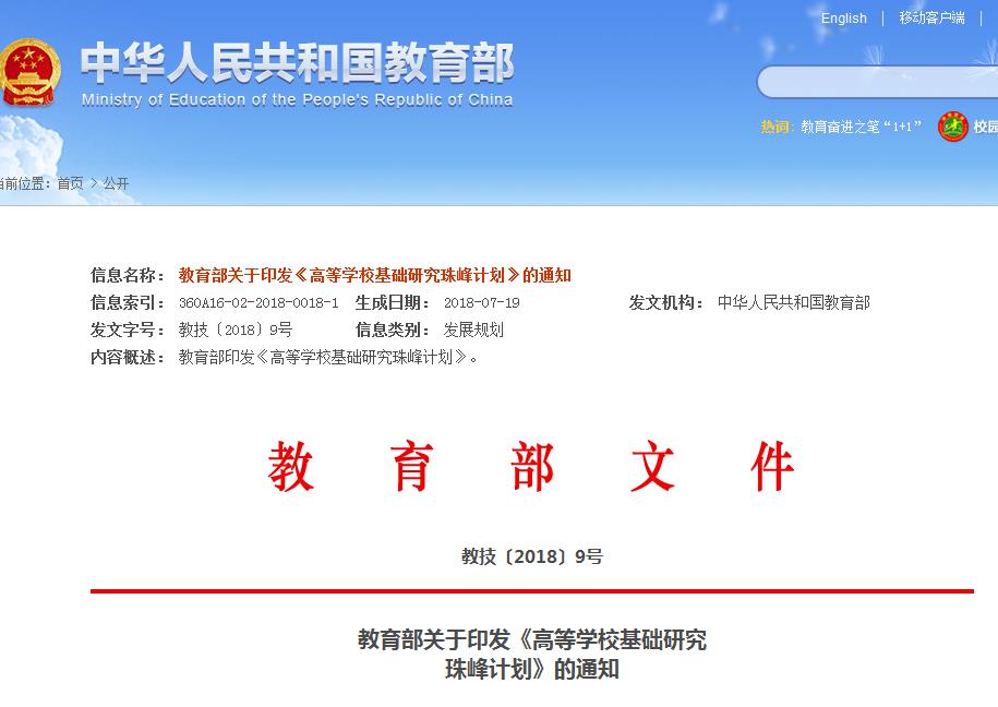 高等學(xué)校基礎(chǔ)研究珠峰計(jì)劃